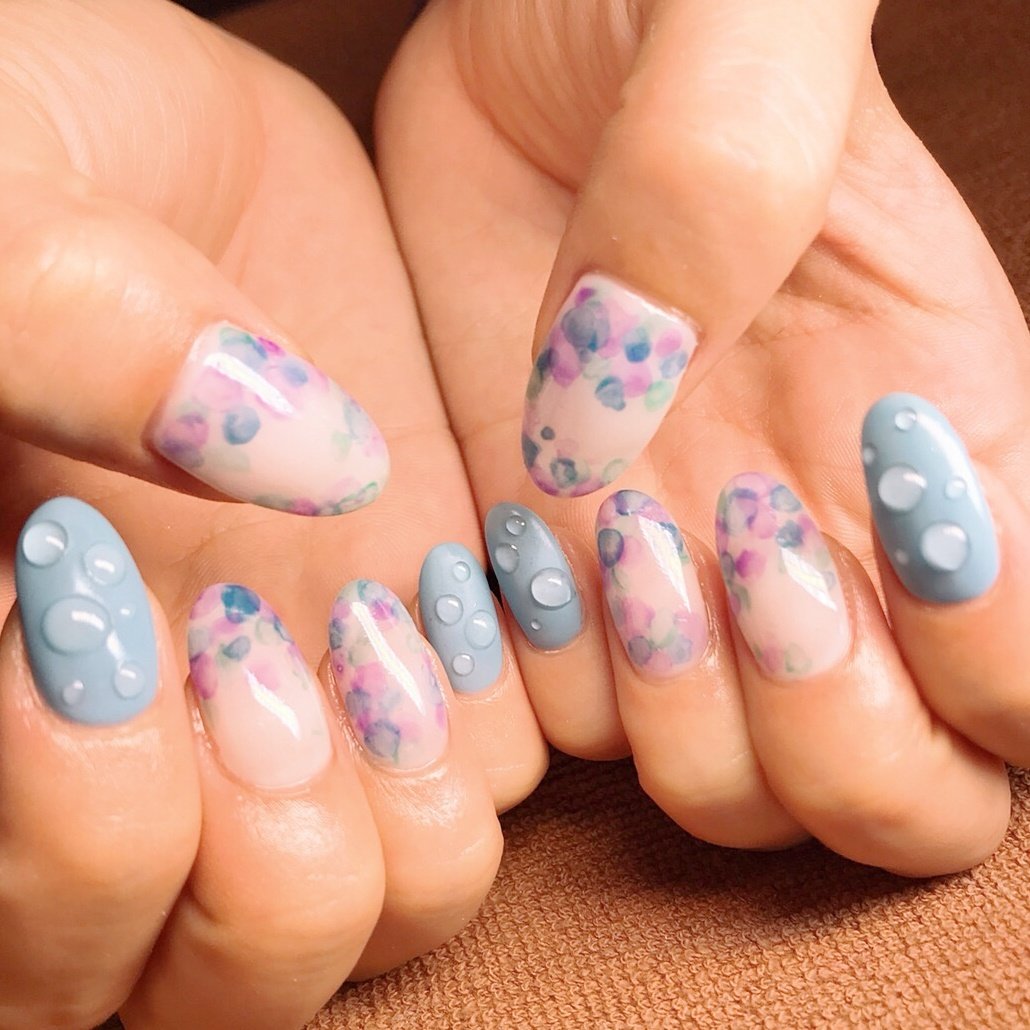 梅雨 ハンド フラワー 水滴 たらしこみ ま なのネイルデザイン No ネイルブック